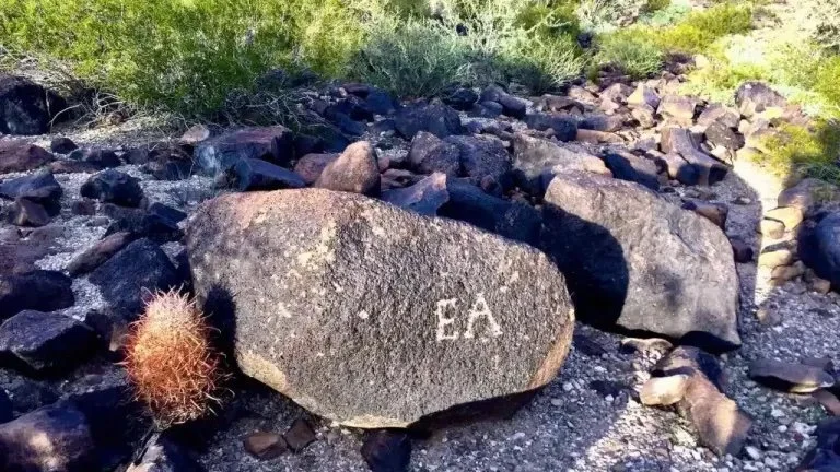 We near the end of our long walk. My legs are loose and beginning to burn. I am hot and mildly delirious, sitting in the scattered shade of an ironwood tree. One of my companions is poking around the volcanic boulder-field where we wait for the rest of our group to catch up. “Hey, check this out,” she yells, “There’s petroglyphs. Also, I think I found Edward Abbey’s grave.” “What?!” I’m jolted out of my stupor. “Holy shit.” We climb up the hillside. There are petroglyphs everywhere, spirals and circles and figures of burnt ocher inset against the black varnish that coats the rock. Among these old etchings, chipped into one of the blocks of pockmarked basalt, in careful, capital letters, a different kind of engraving: “EA.”