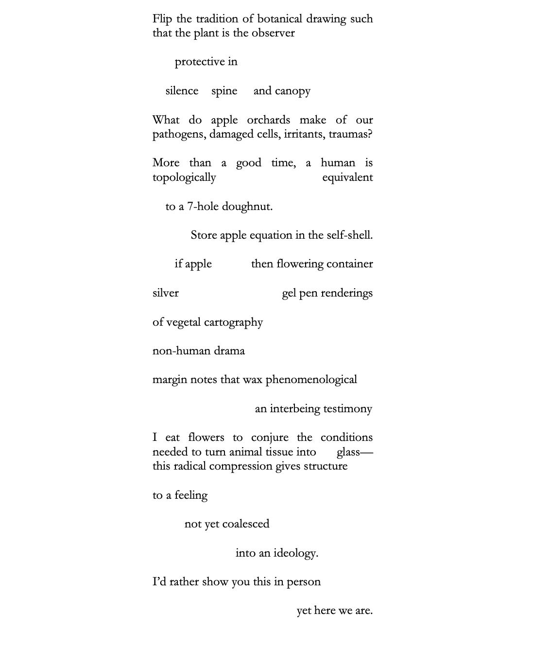 Christine is a poet and artist based in North Adams, MA. She is the author of Allow Me to Slip on Something a Little More Hypocycloid (PRROBLEM, 2025) and many chapbooks. She holds an MFA from Bard College and a BFA from the Cleveland Institute of Art.